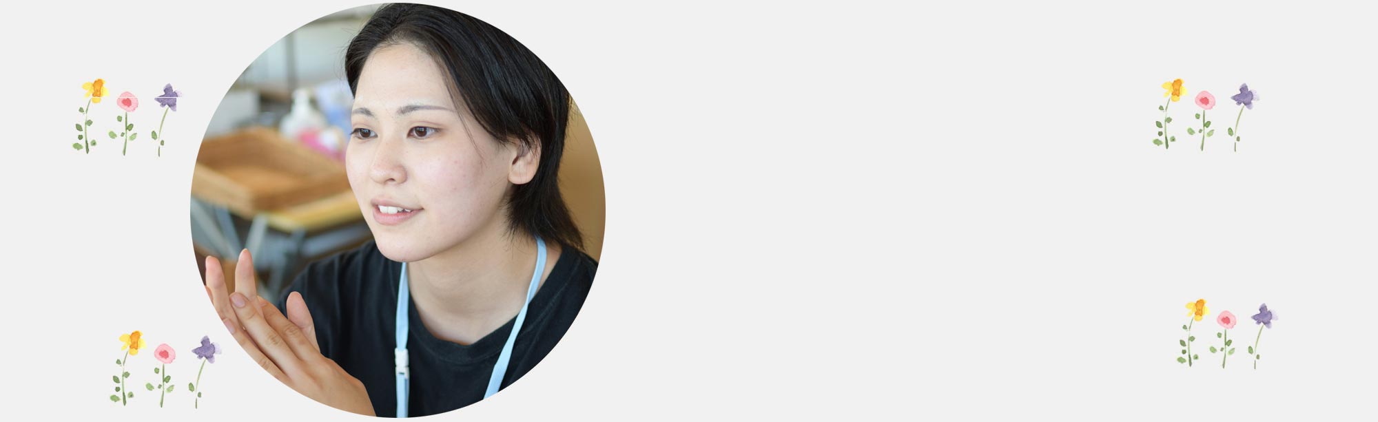 ○私が担当している利用者は強い自閉症を持たれている方が多く、コミュニケーションが困難で意思を汲み取りきれないことや、問題行動に悩むことも多いです。しかし日々関わり続けることで、何を訴えたいのかほんの少しだけでも感じ取ることができたり、活動の最中に笑顔を見せてくれた時などにやり甲斐を感じています。(入職3年目)